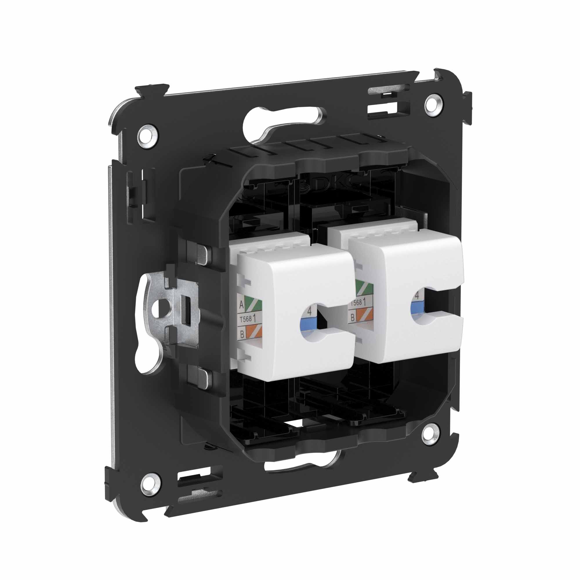 Компьютерная розетка RJ-45 без шторки в стену, кат.6А двойная, "Avanti", "Черный квадрат"