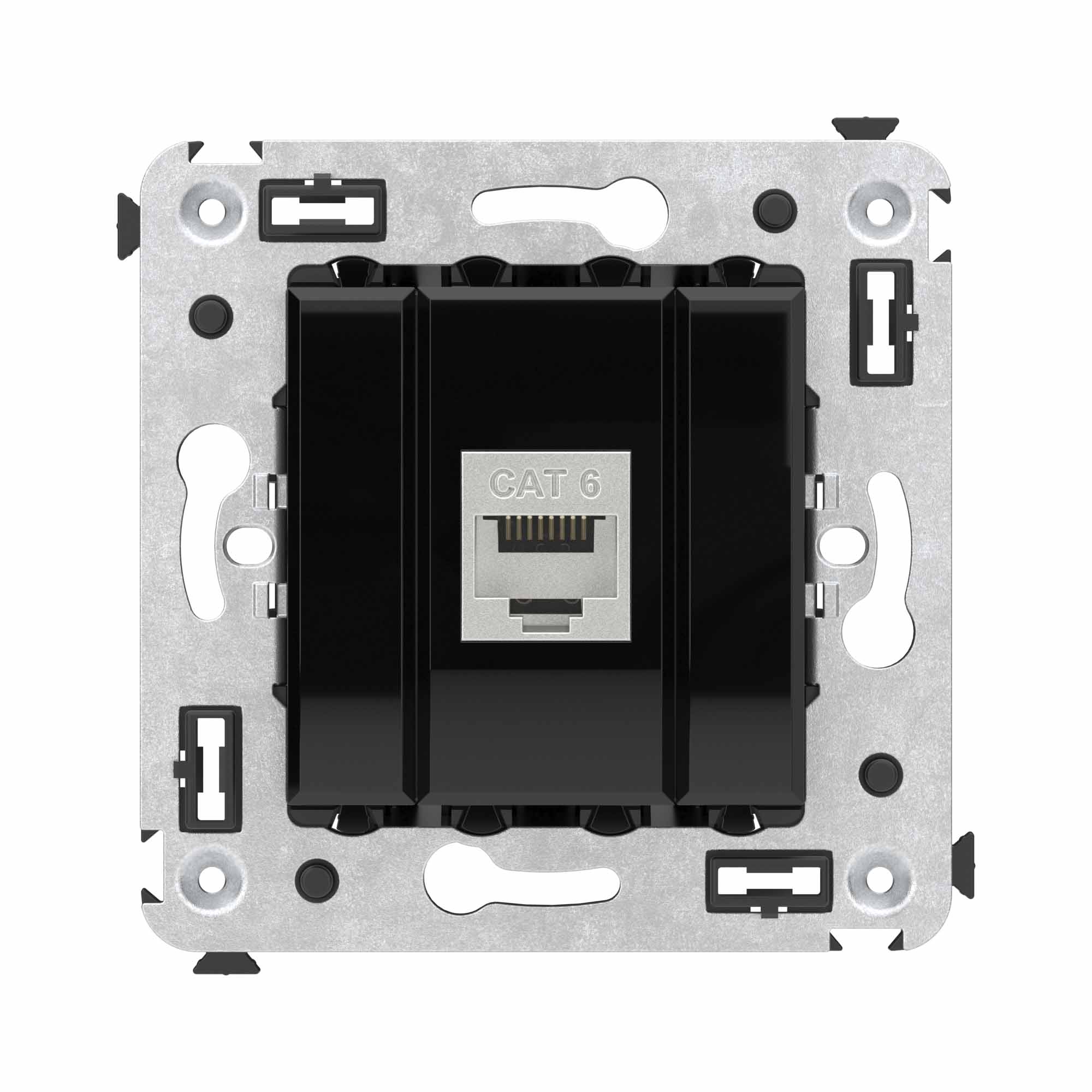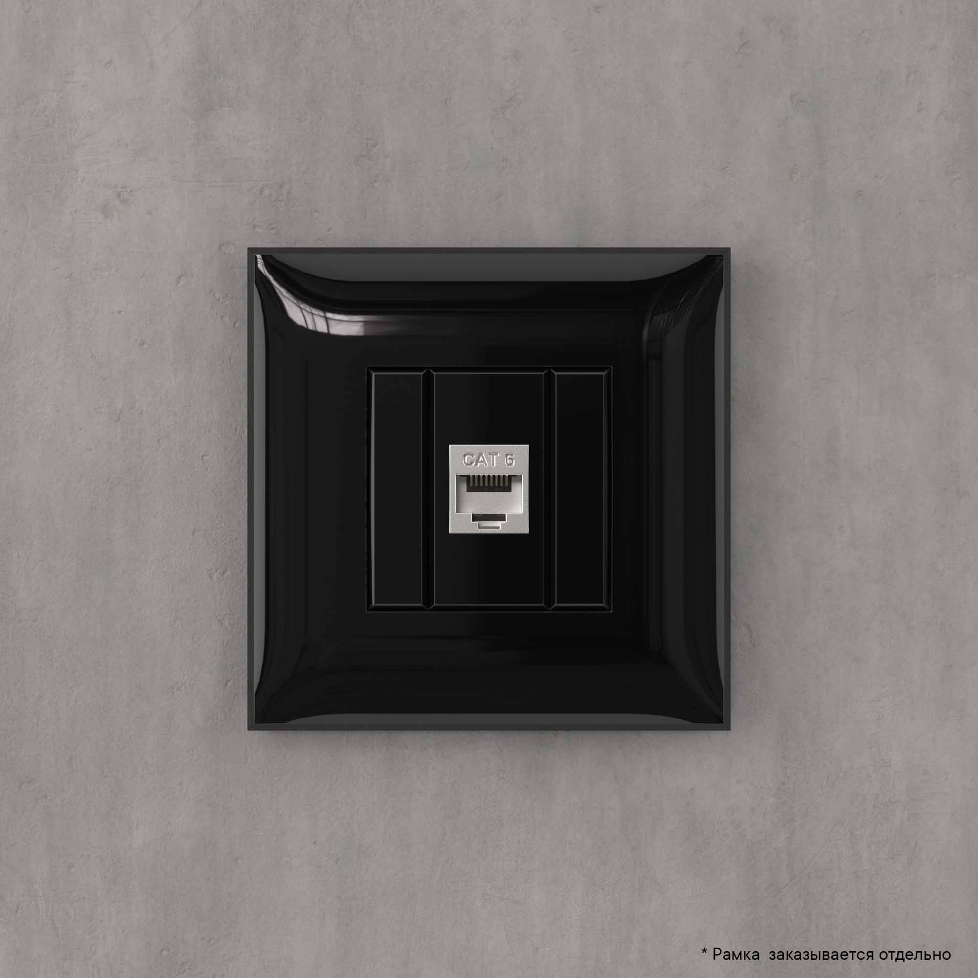 Компьютерная розетка RJ-45 без шторки в стену, кат.6 одинарная экранированная, "Avanti", "Черный квадрат"