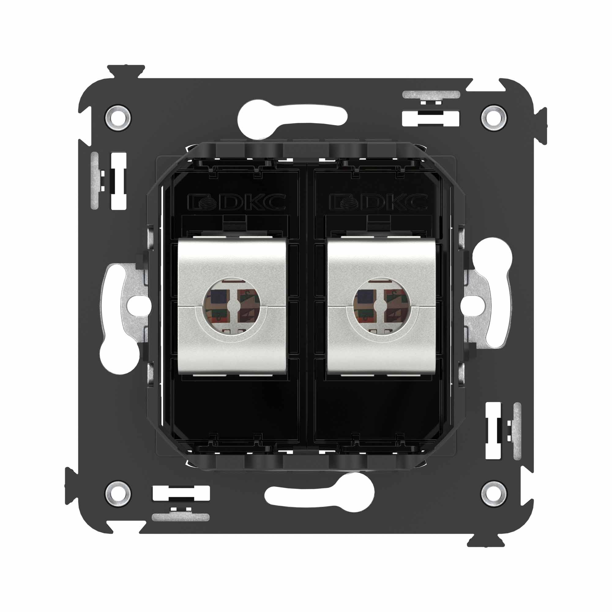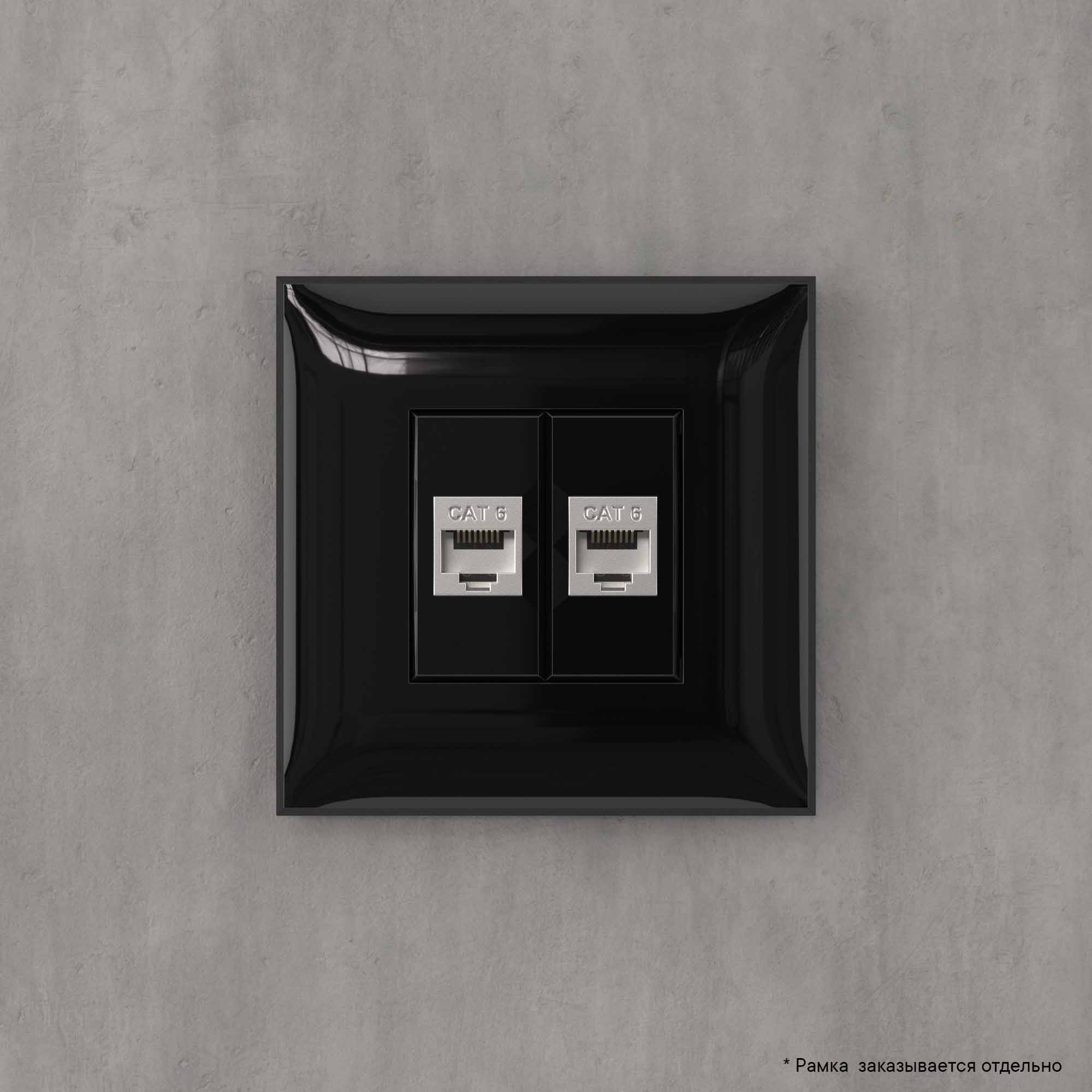 Компьютерная розетка RJ-45 без шторки в стену, кат.6 двойная экранированная, "Avanti", "Черный квадрат"