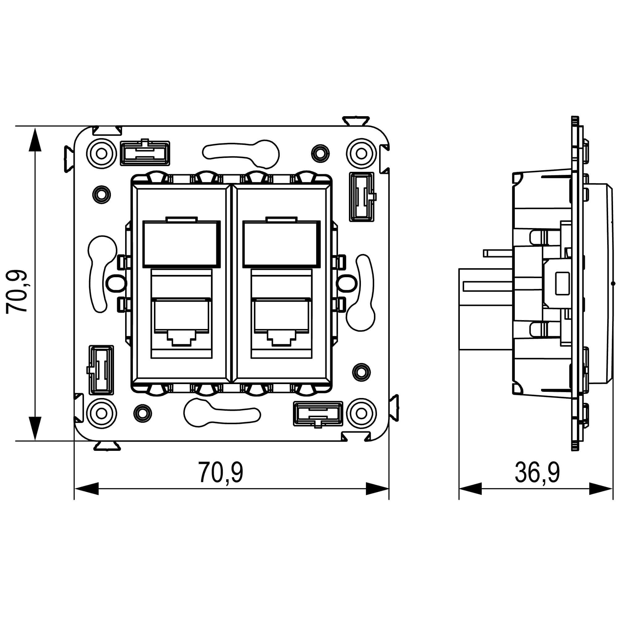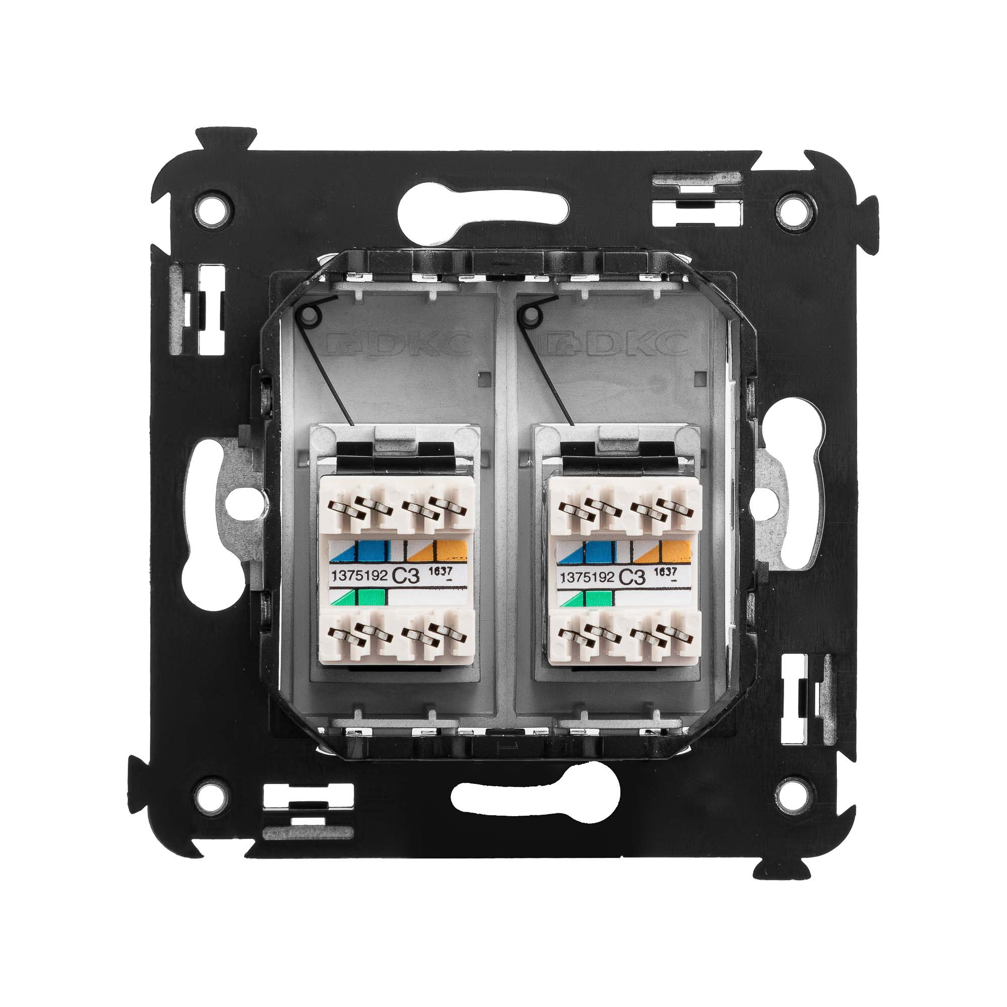 Телефонная розетка RJ-12 в стену двойная, "Avanti", "Закаленная сталь"