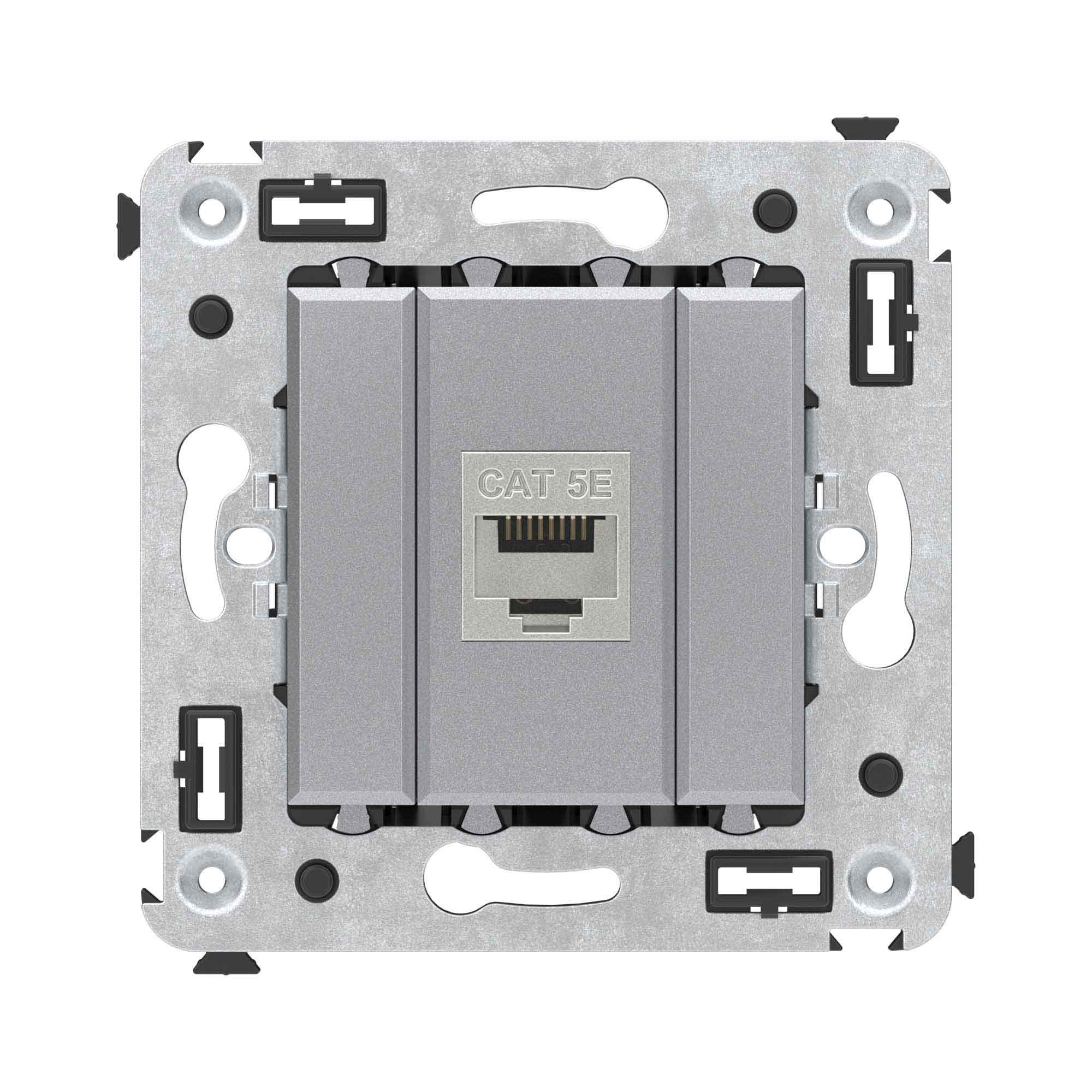 Компьютерная розетка RJ-45 без шторки в стену, кат.5e одинарная экранированная, "Avanti", "Закаленная сталь"
