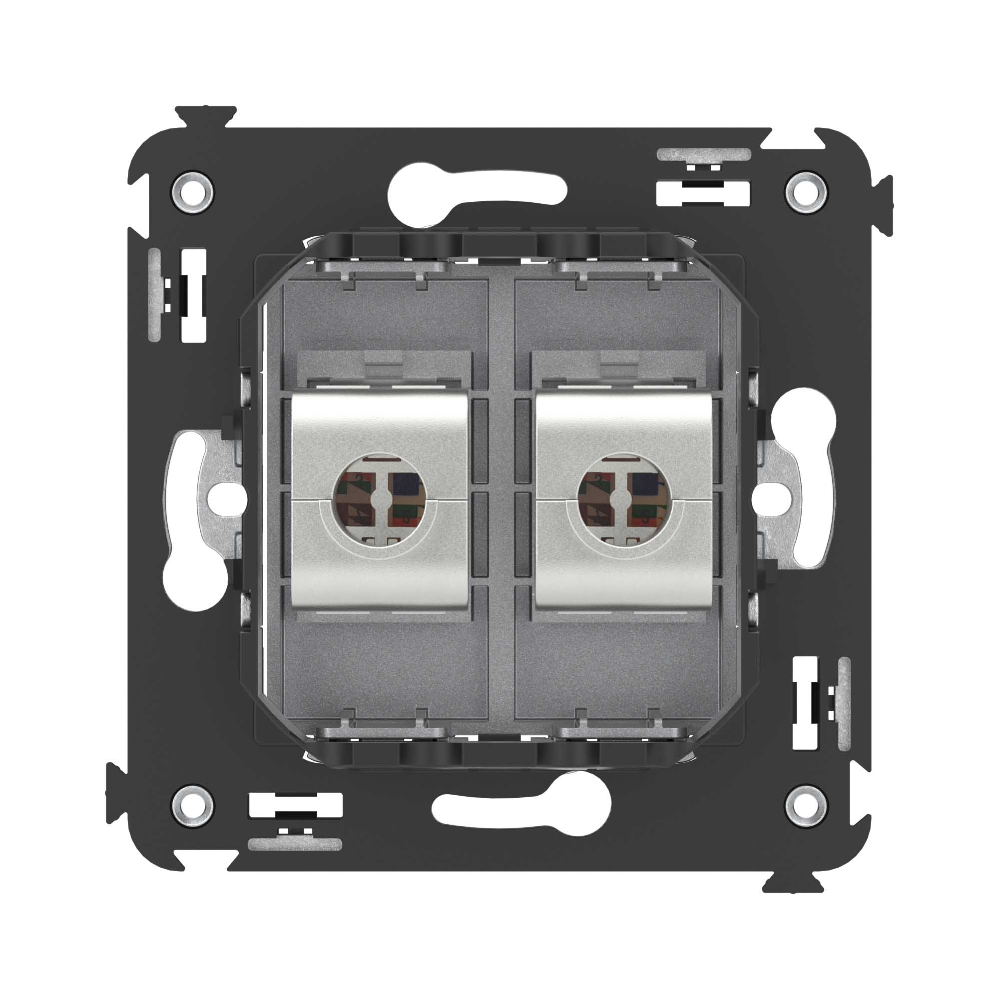 Компьютерная розетка RJ-45 без шторки в стену, кат.5e двойная экранированная, "Avanti", "Закаленная сталь"