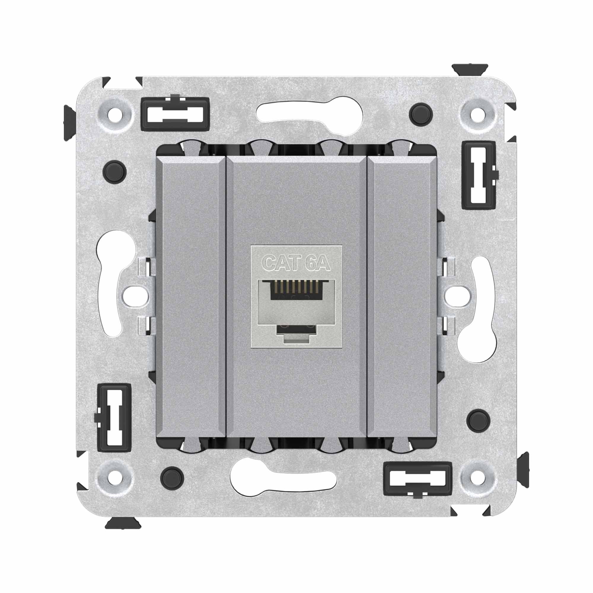 Компьютерная розетка RJ-45 без шторки в стену, кат.6А одинарная экранированная, "Avanti", "Закаленная сталь"