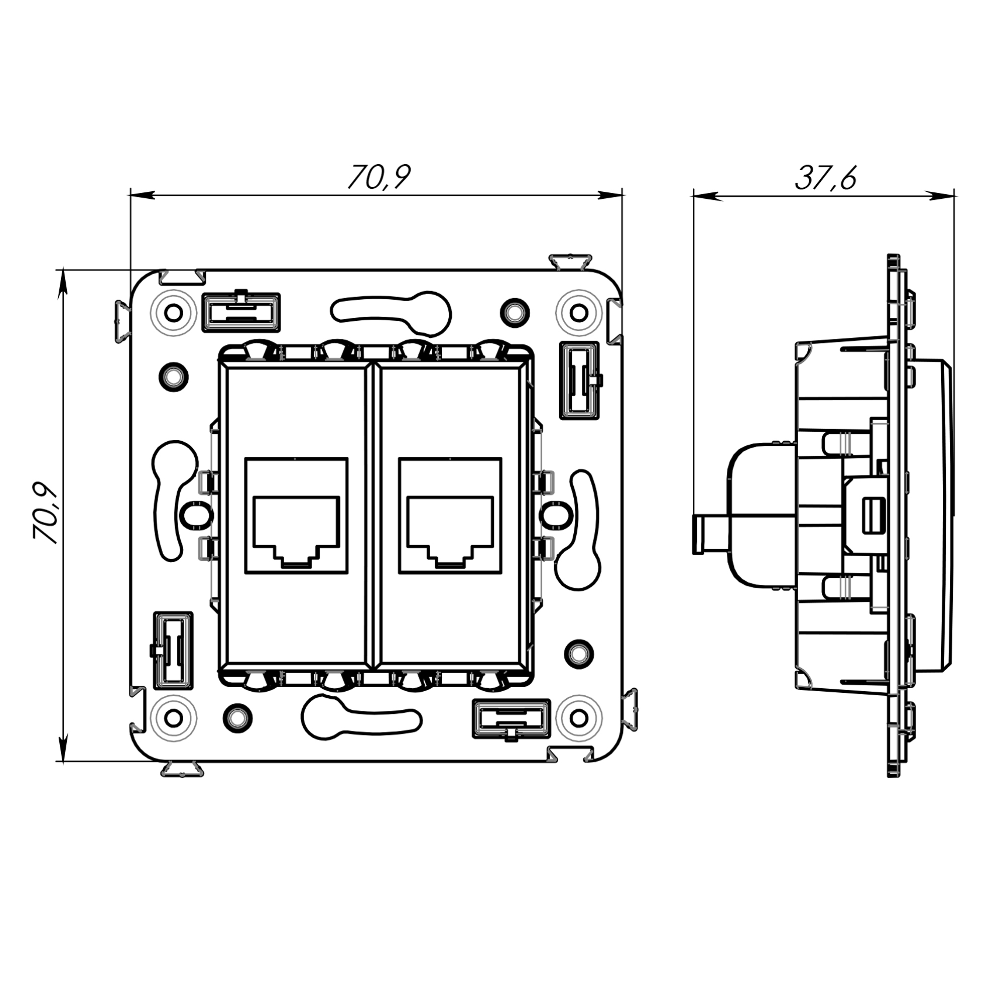 Телефонная розетка RJ-12 без шторки в стену двойная, "Avanti", "Ванильная дымка"