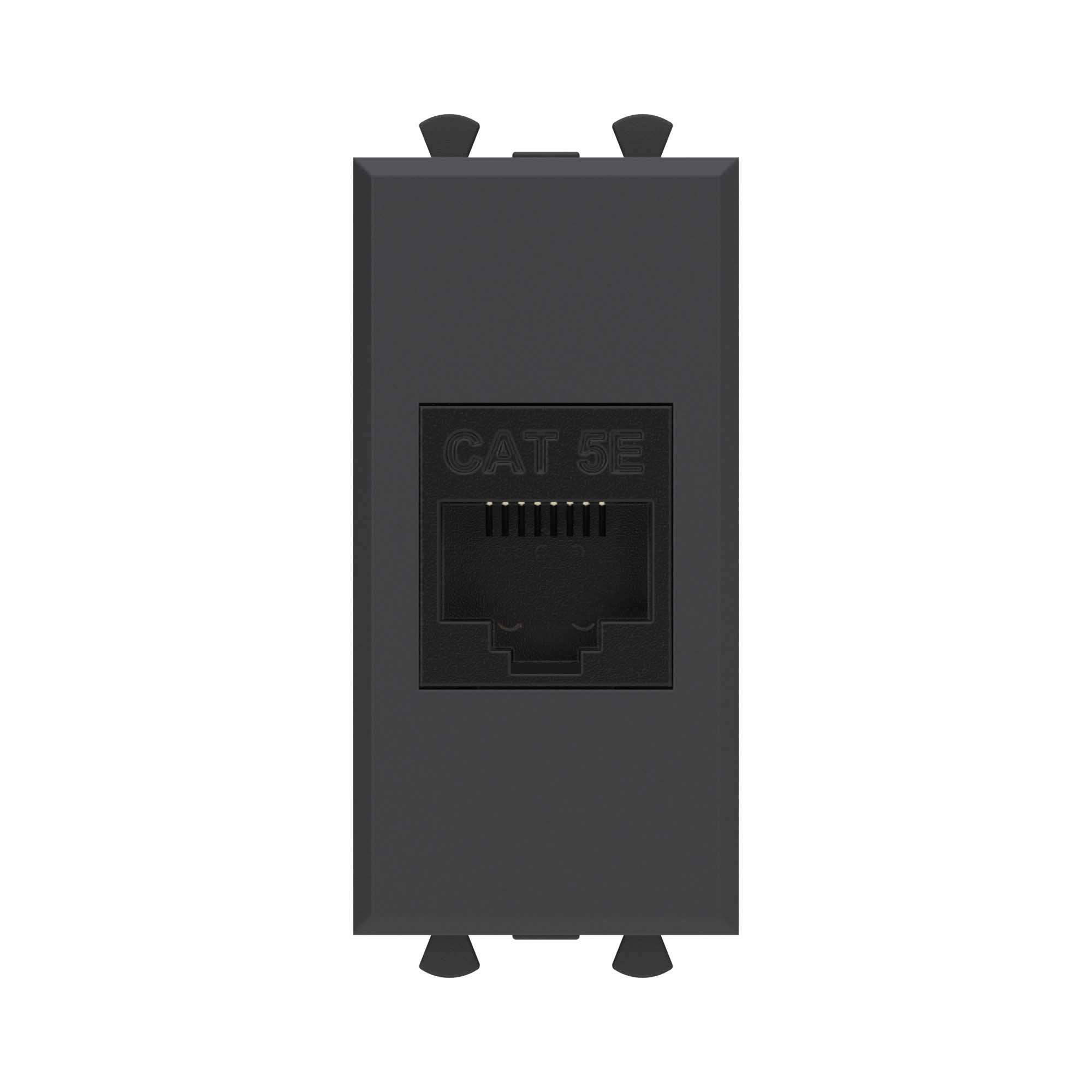 Компьютерная розетка RJ-45 без шторки модульная, кат.5е, "Avanti", "Черный матовый", 1 модуль