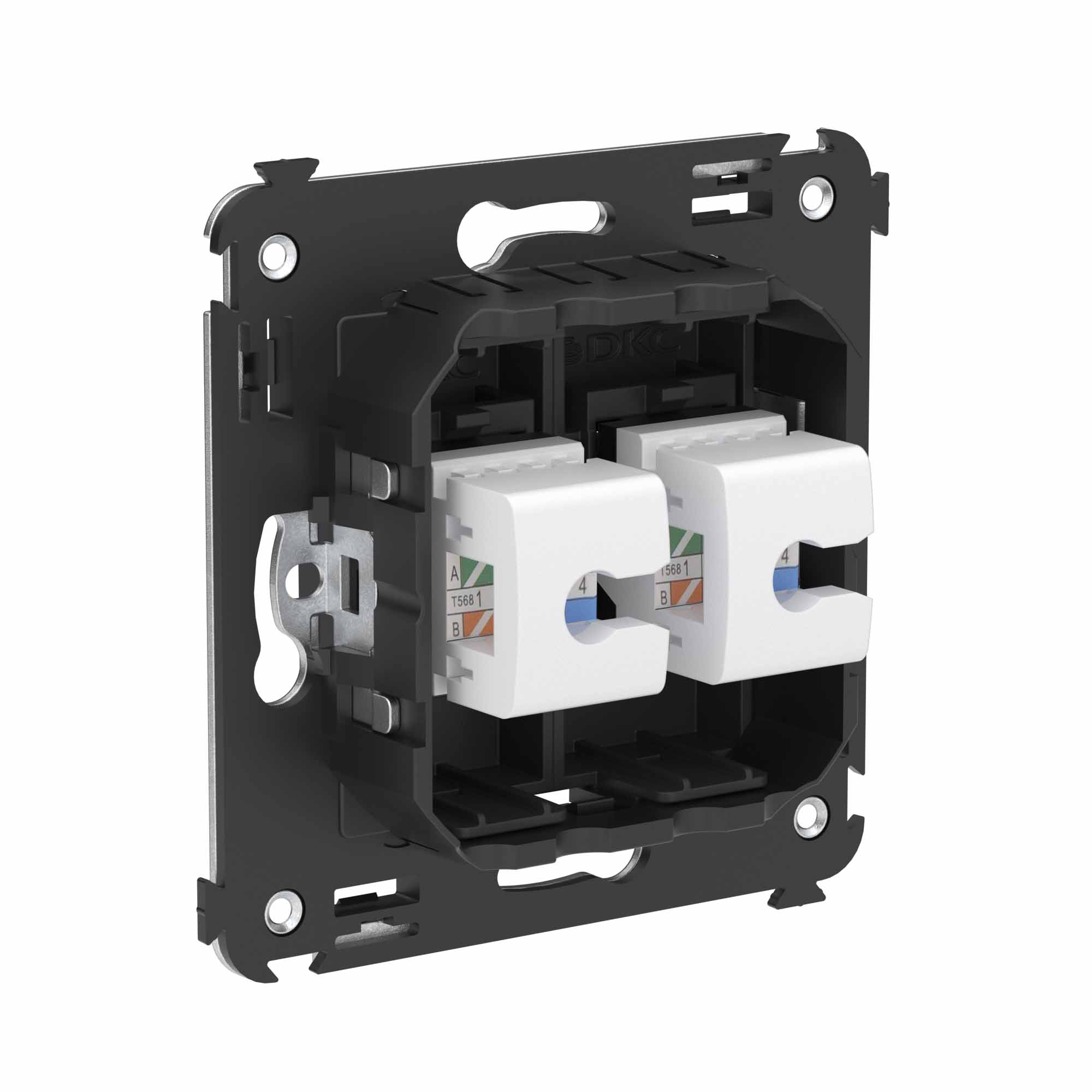 Компьютерная розетка RJ-45 без шторки в стену, кат.6А двойная, "Avanti", "Черный матовый"