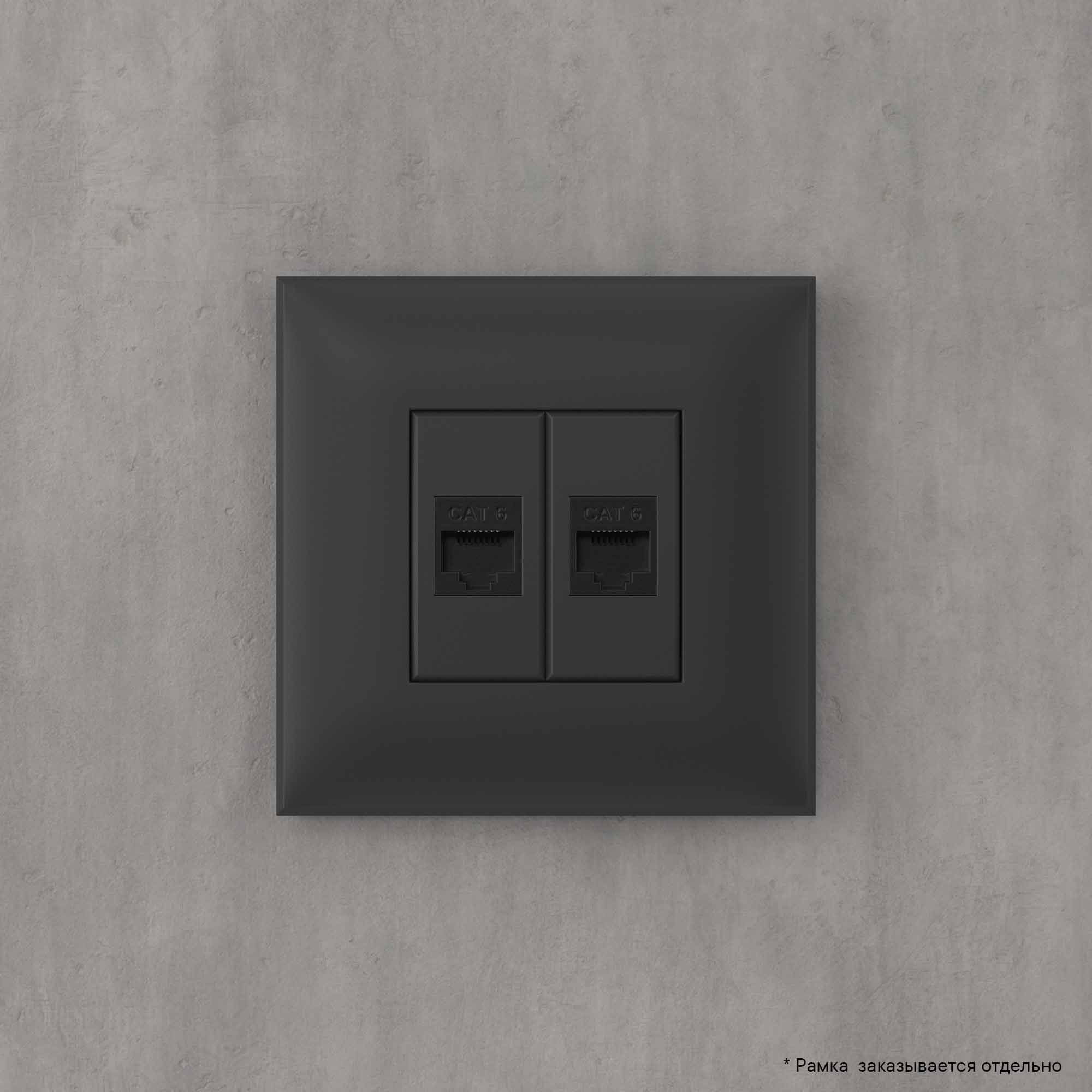 Компьютерная розетка RJ-45 без шторки в стену, кат.6 двойная, "Avanti", "Черный матовый"