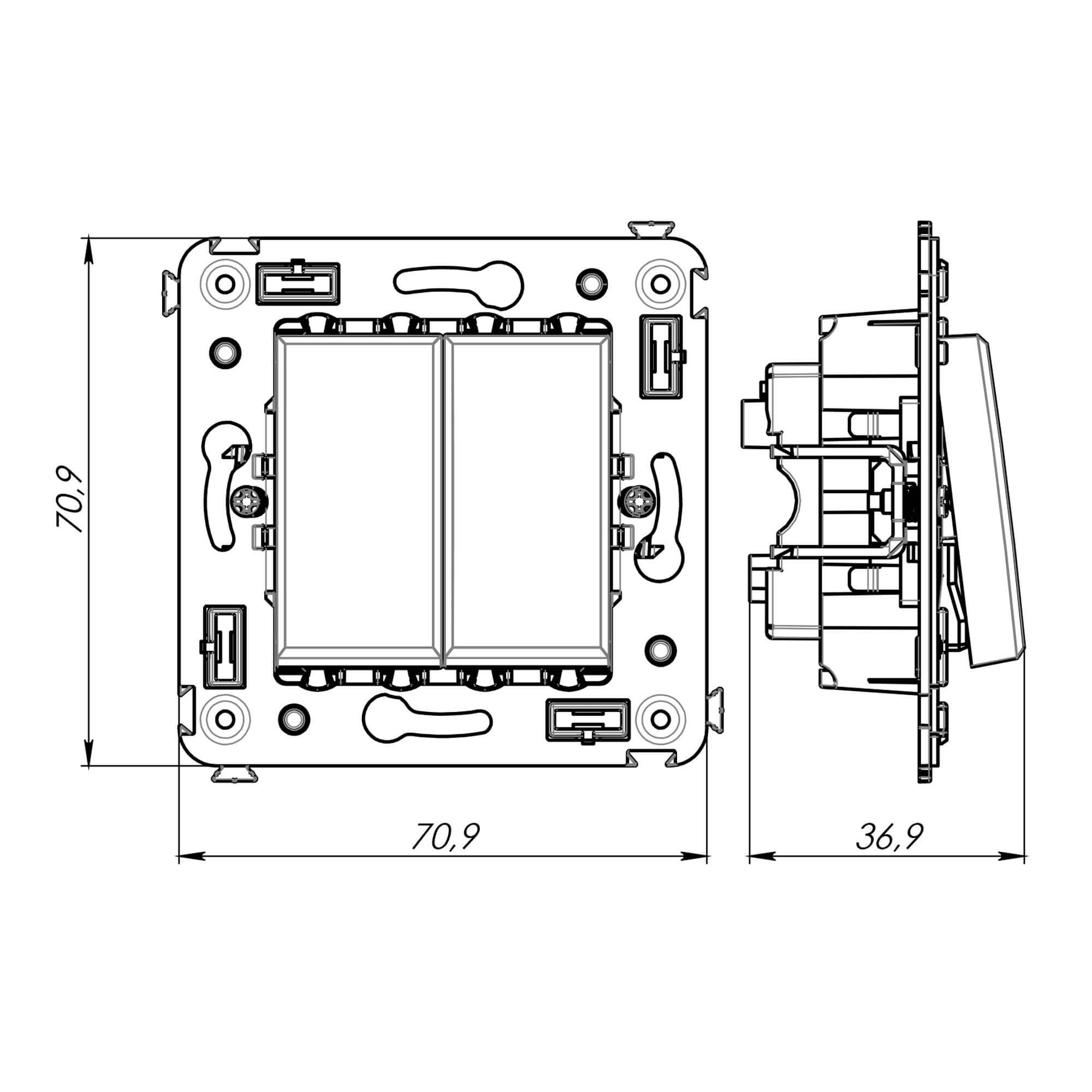 Выключатель двухклавишный в стену, "Avanti", "Белое облако"