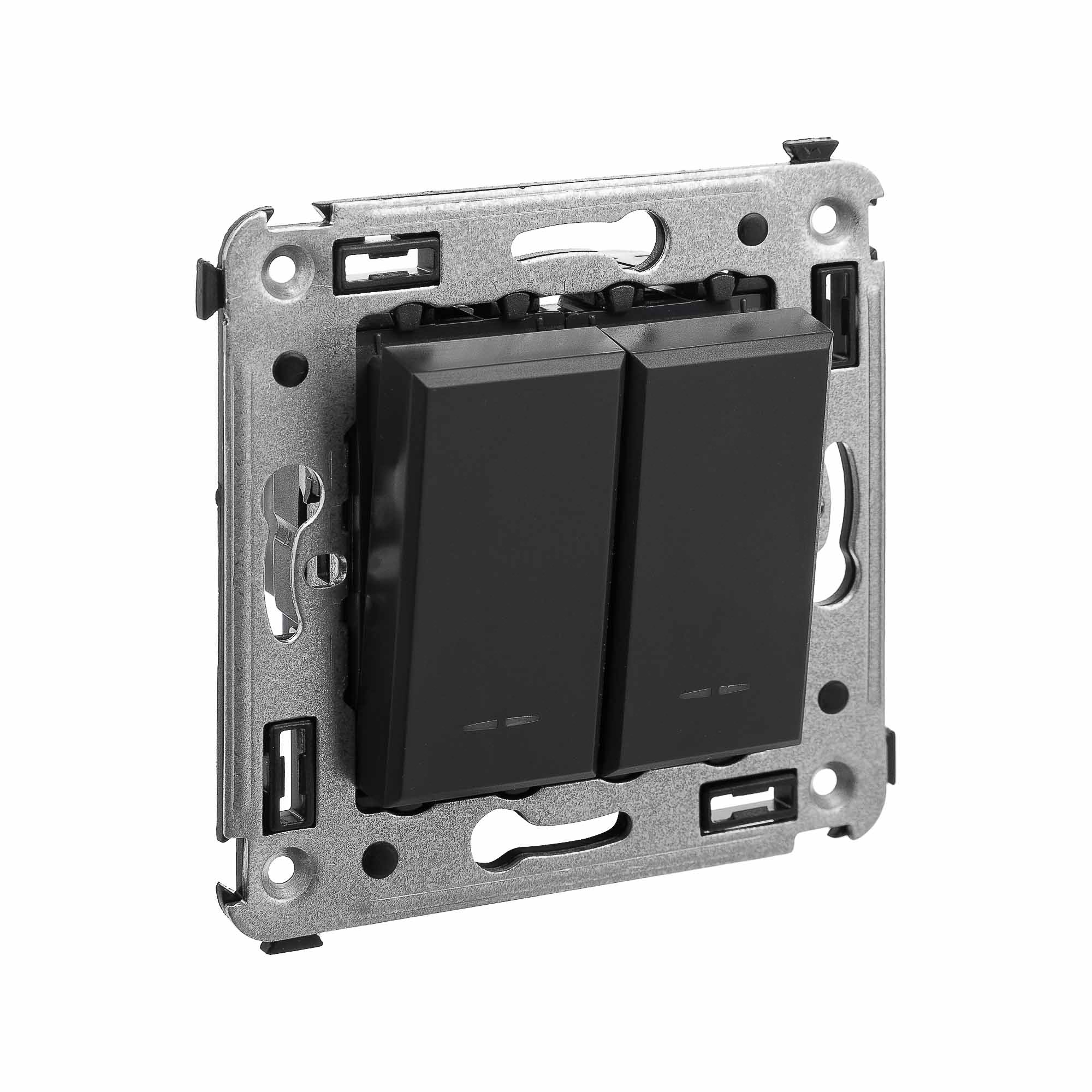 Инвертор двухклавишный в стену, "Avanti", "Черный матовый"