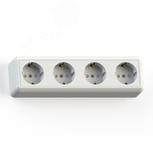 ОПТИМА Розетка открытой установки четырехместная с заземляющим контактом и защитной шторкой, 16А РА 16-403, белая