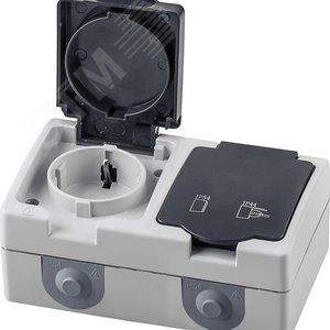 Розетка 2-местная с/з, 250В, 16А, серия Велена, серый/графит,
