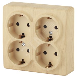 Розетка 4х2P+E Schuko со шторками, 16A-250В, ОУ, Эра Эксперт, сосна, 11-2211-11