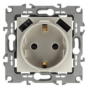 Розетка 2P+E 16A-250В, штор. с 2xUSB 5В-3А, Эра12, шампань (10/100/2000) 12-4109-04