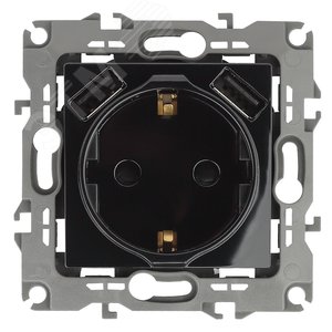 Розетка 2P+E 16A-250В, штор. с 2xUSB 5В-3А, Эра12, чёрный (10/100/2000) 12-4109-06