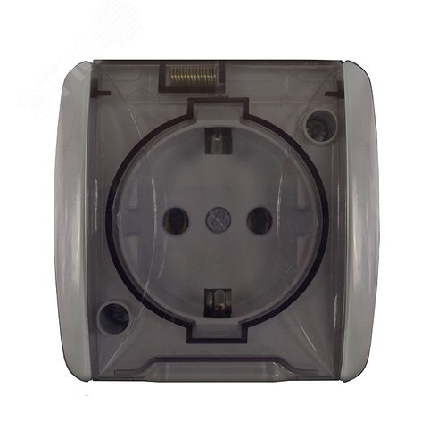 Клио розетка одноместная с прозрачной крышкой Клио, IP54, с/з, о/у, 16А, 220В, серый (еврослот)