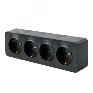 Розетка четырехместная с/з 250В 10А серия София черный матовый STEKKER
