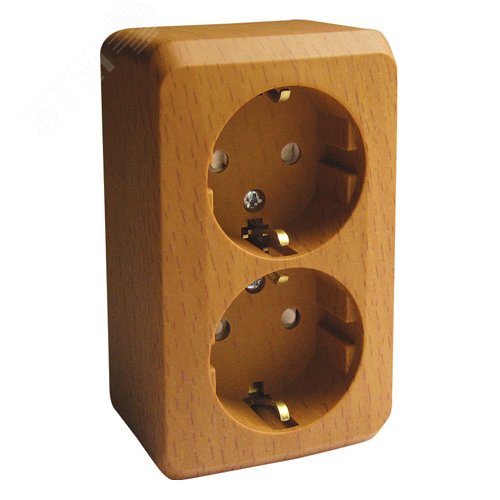 ЭТЮД Розетка двойная наружная с заземлением со шторками Бук