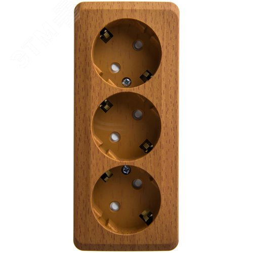 ЭТЮД Розетка тройная открытой установки с заземлением со шторками 16А 250B, бук