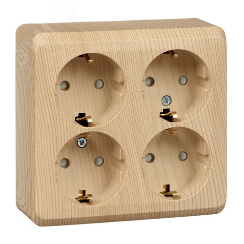 ЭТЮД Розетка четырехместная наружная с заземлением со шторками 16А 250B сосна