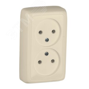 Розетка двойная наружная со шторками с изоляционной пластиной слоновая кость