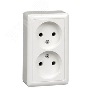 ХИТ Розетка двойная наружная белая без заземления изолирующая пластина 16А 250В