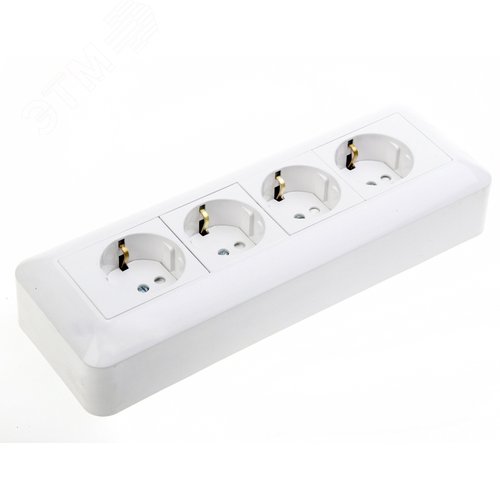 ПРИМА Розетка 4 поста наружная с заземлением 250В 16А со шторками белая монтажная пластина