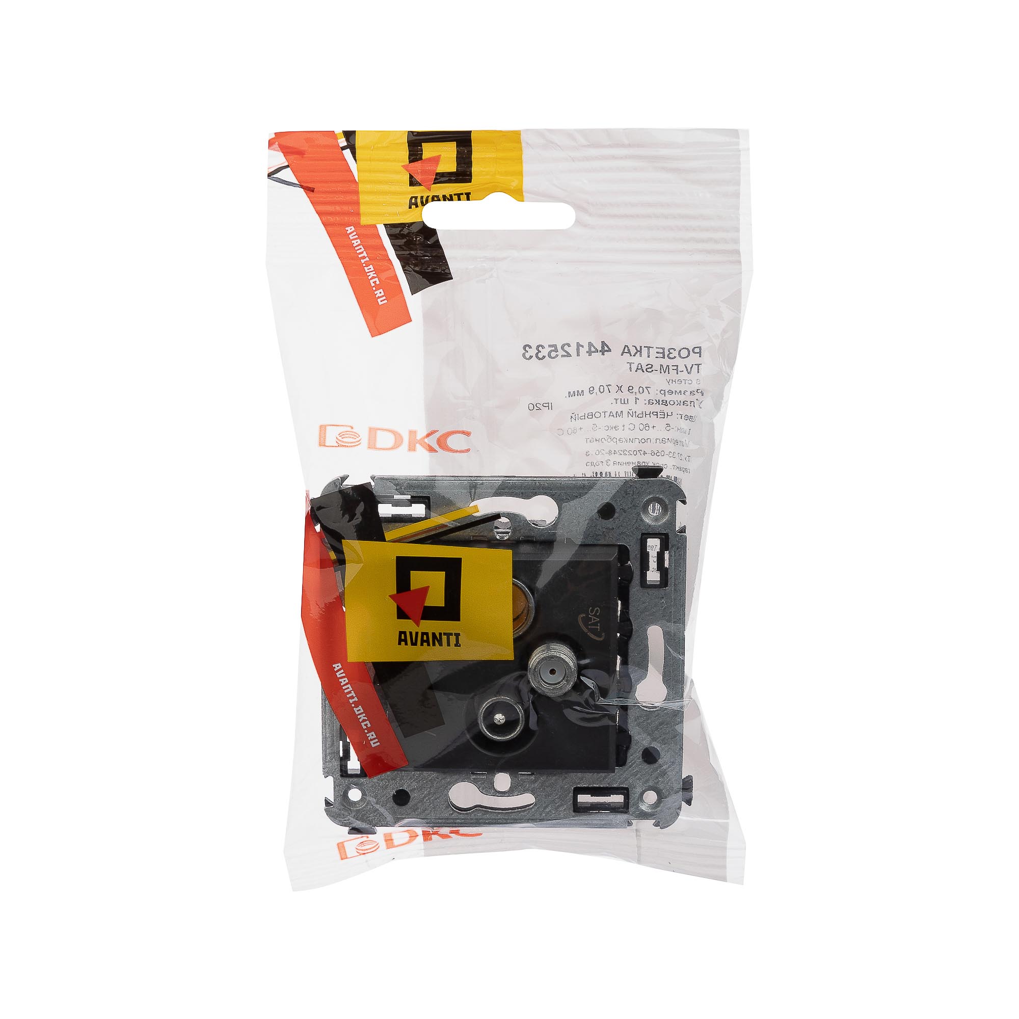 Розетка TV-FM-SAT в стену, "Avanti", "Черный матовый"