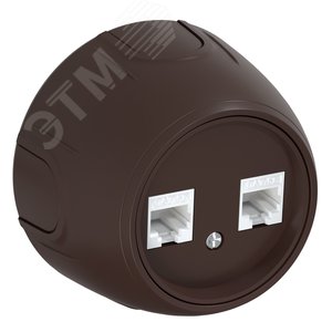 Розетка двойная компьютерная RJ45 кат.5e Rotondo, цвет коричневый