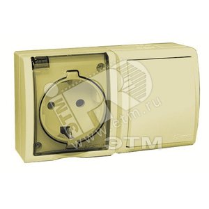 15 Aqua Блок розетка с заземлением 16А 250В + выключатель 10А 250В IP54 слоновая кость