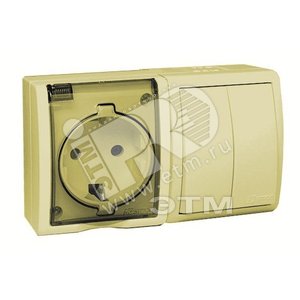 15 Aqua Блок розетка с заземлением 16А 250В + выключатель двойной 10А 250В IP54 слоновая кость