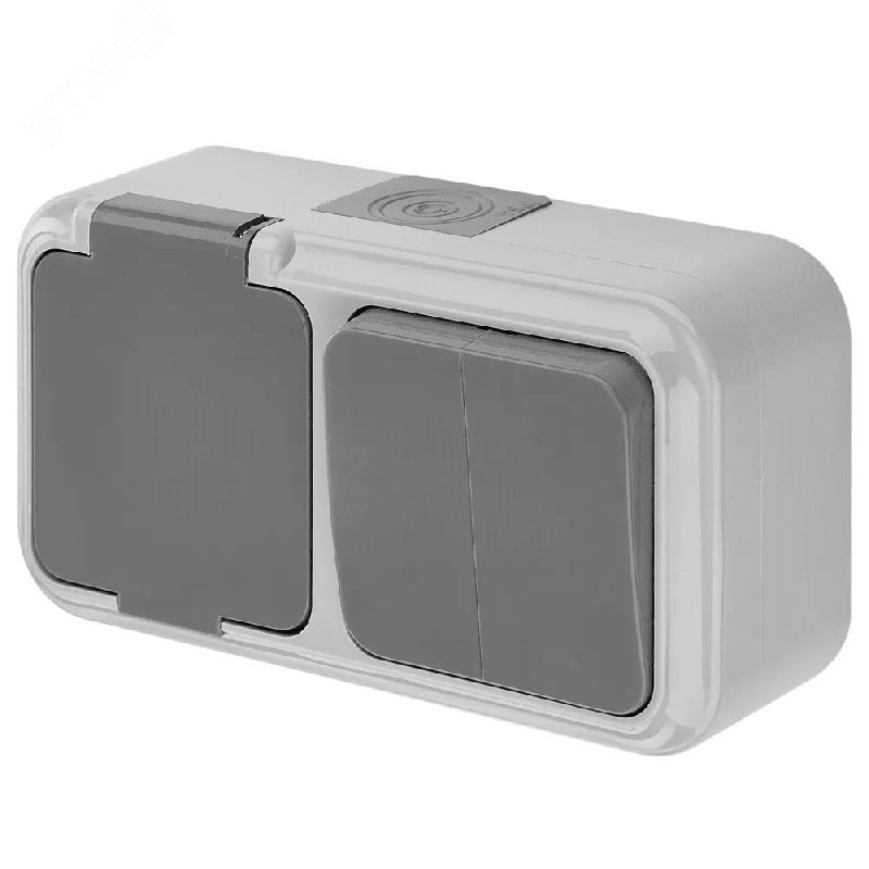 Беларусь Блок выключатель двухклавишный+розетка наружный IP54 2В-РЦ-655 (03)