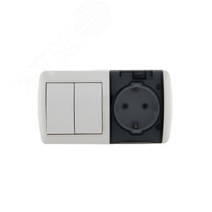 HATA Выключатель двухклавишный с розеткой с заземлением и крышкой белый, горизонтальный