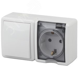 Блок розетка+выключатель IP54, 16A(10AX)-250В, ОУ, Эра Эксперт, белый, 11-7401-01