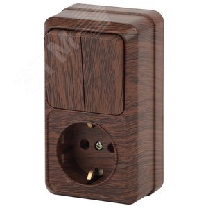 Блок розетка с выключателем Intro Quadro 2-706-10 двойным вертикальный 10(16)А-250В, IP20, ОУ, венге