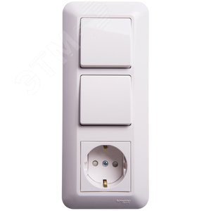 Прима С/У БЛОК: розетка с заземлением + выключатель одноклавишный + выключатель одноклавишный белый