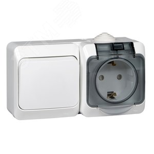 ЭТЮД Блок Выключатель одноклавишный/Розетка наружная с заземлением со шторками IP44 белый