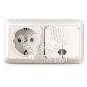Блок выключатель двуклавишный c подсветкой + розетка с заземлением Олимп горизонтальный белый