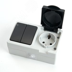 Блок розетка 1-местная с/з + выключатель 2-клавишный, серый/графит,