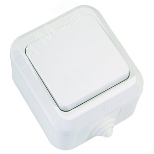 Выключатель одноклавишный, в сборе, брызгозащищенный, IP44, белый