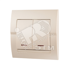DERIY Выключатель 2-клавишный с подсветкой ПБТ жемчужно-белый