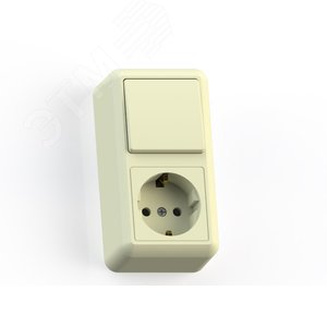 ОПТИМА Блок комбинированный открытой установки (одноклавишный выключатель+ розетка с заземляющим контактом) БКВР-405, слоновая кость