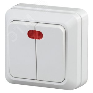 Выключатель Intro Quadro 2-105-01 двухклавишный с подсветкой, 10А-250В, IP20, ОУ, белый