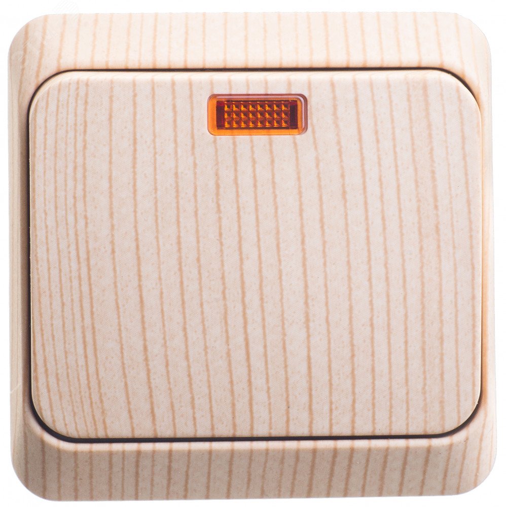 ЭТЮД Выключатель одноклавишный наружный с подсветкой сосна сх.1