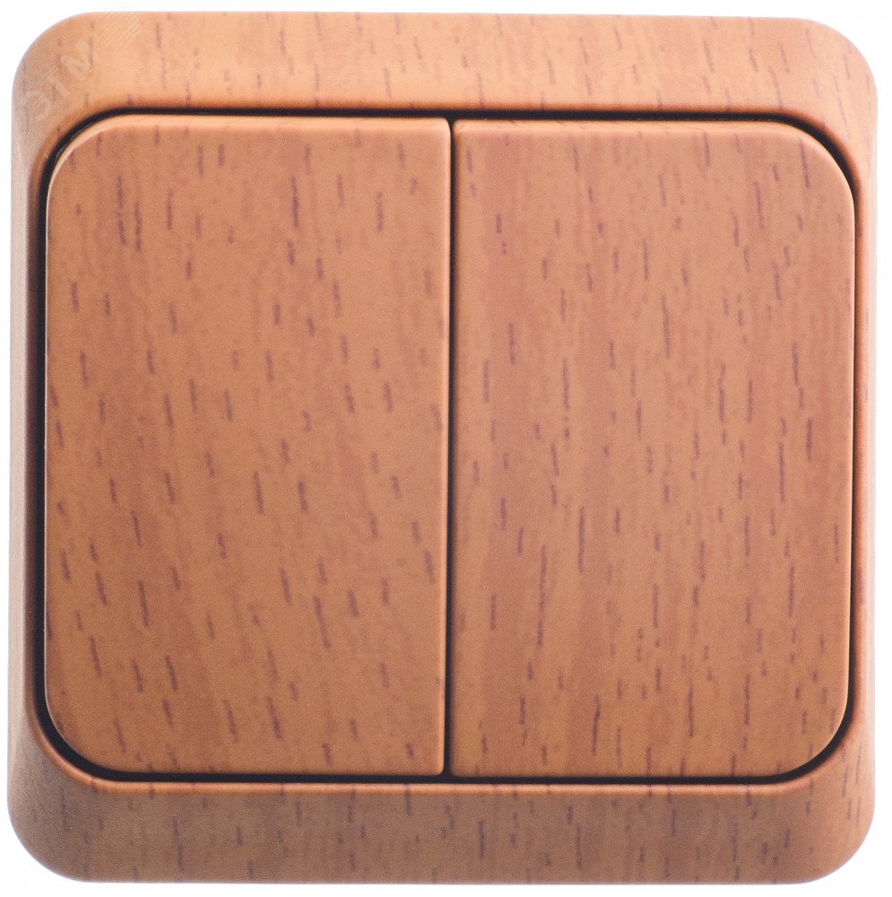 ЭТЮД Выключатель двухклавишный наружный с подсветкой Бук