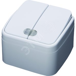 Выключатель двухклавишный с подсветкой, серия Basic, белый,