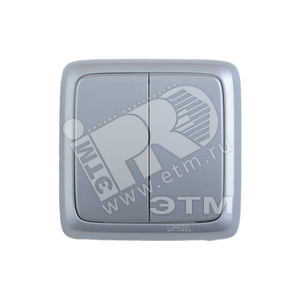Выключатель двухклавишный наружный с изоляционной пластиной серебро 16А