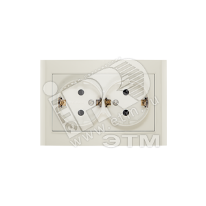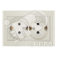 Розетка Бриллиант двойная с заземлением с защитной шторкой слоновая кость