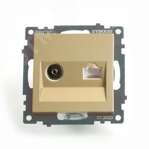 Розетка TV + компьютерная RJ-45 (механизм) серия Катрин золото STEKKER