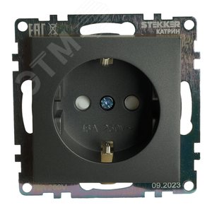 Розетка одноместная с защитной шторкой с/з (механизм) 250В 16А серия Катрин графит STEKKER