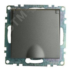 Розетка одноместная с/з с крышкой серия Катрин графит STEKKER